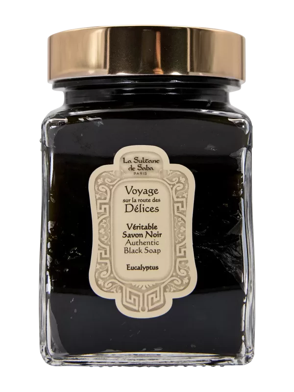 „LA SULTANE DE SABA – Czarne mydło z eukaliptusem” to wysokiej jakości produkt, który można kupić w Herhel Boutique. Mydło zawiera eukaliptus, który nadaje orzeźwiający zapach i ma właściwości, które pomagają oczyścić skórę, pozostawiając ją zregenerowaną i nawilżoną.