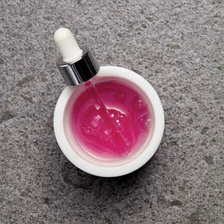 Дивовижна сироватка має незвичайний бузковий колір – його забезпечує антиоксидантний екстракт ягід саскатун. Цей живильний інгредієнт захищає природні запаси гіалуронової кислоти в шкірі й забезпечує еластичність зсередини.