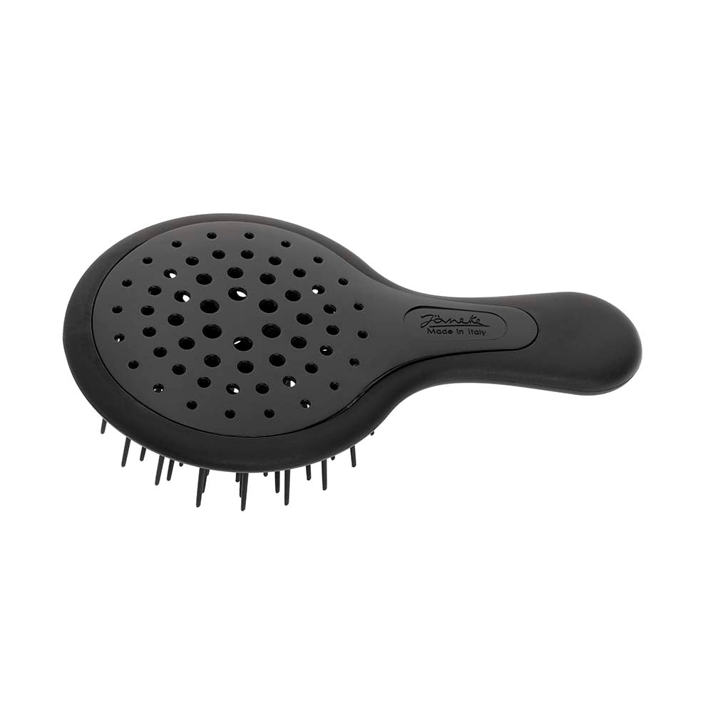 Okrągła szczoteczka silikonowa. Ten pędzel jest młodszą siostrą Superbrusha. To najlepszy produkt do delikatnego wygładzania wyprysków i splątań na suchych lub mokrych włosach, jednocześnie ożywiając i masując skórę głowy. Uzyskaj gładkie, lśniące włosy bez ciągnięcia i łamania. Dostępne w zabawnych kolorach i wygodnym rozmiarze, który mieści się w torebce i jest idealny w podróży. Utrzymanie codziennej czystości jest bardzo łatwe. Dzięki tej szczotce Twoje dziecko również pokocha szczotkowanie włosów.